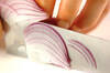 紫玉ネギは縦薄切りにする。