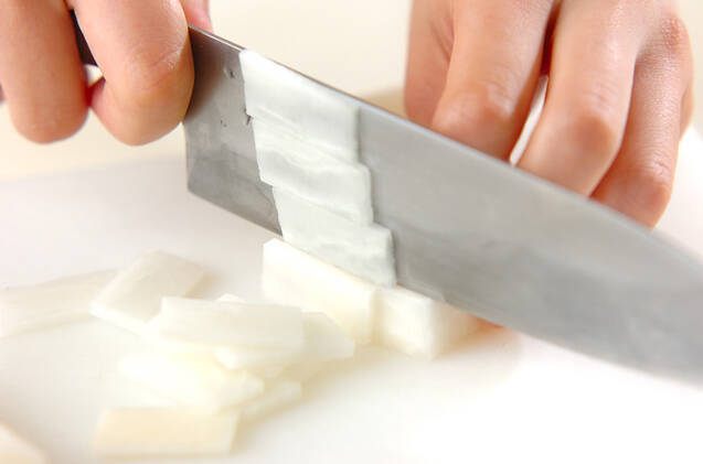大根は皮をむいて短冊切りにし、塩をまぶして水気が出たら絞る。