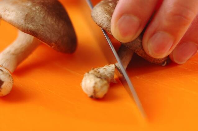 シイタケは石づきを切り落とし、半分に切る。