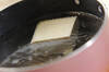 <和え衣>の豆腐は鍋に入れ、ヒタヒタの水、塩を加えて強火にかける。豆腐が踊り出したらザルに上げて冷まし、水きりをする。