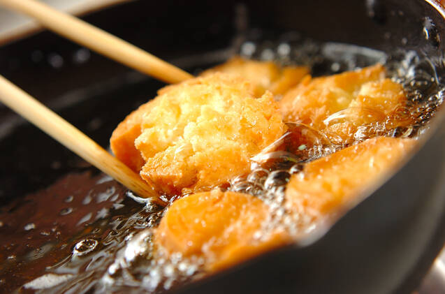 170℃の揚げ油に入れ、きれいな揚げ色がつくまで揚げる。粗熱が取れたら粉糖を振る。
