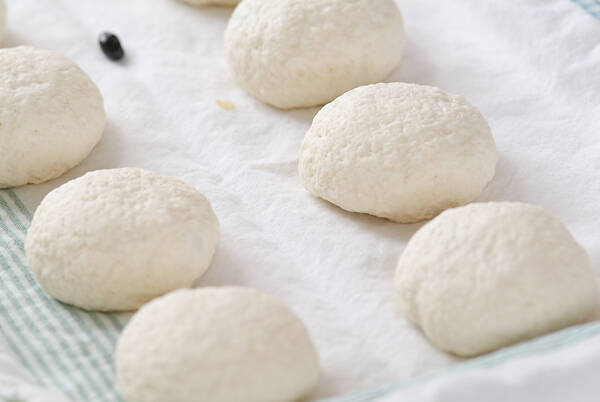 閉じ目を下にしてオーブンシートを敷いた天板に、間隔をあけて並べる。ラップを掛け、発砲スチロールの箱又は大きめの透明なビニール袋に、乾燥しないよう熱湯を入れたコップと一緒に入れて温かい所に置き、二次発酵させる。又はレンジの発酵機能を使って二次発酵させる。(約30分)