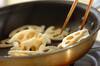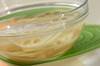 レンコンは皮をむいて厚さ3mmの半月切りにし、酢を加えた水にさらして水気をきる。赤唐辛子は半分に折る。