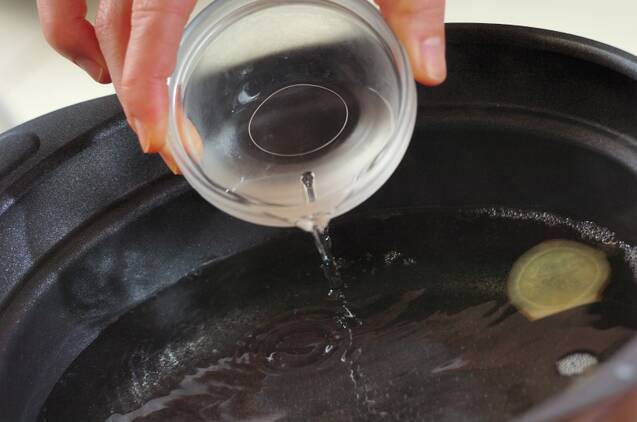 鍋に<だし汁>の材料を入れて中火にかける。煮たつ直前で昆布を取り出し、<調味料>の材料を加えて弱めの中火にする。