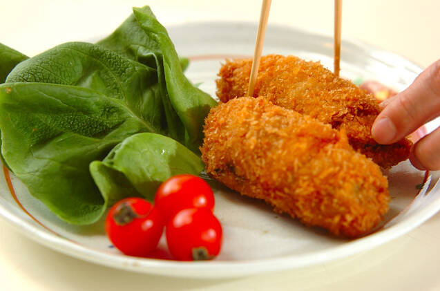器にサラダ菜と(2)のフライを盛り合わせ、プチトマト、練りからしを添える。