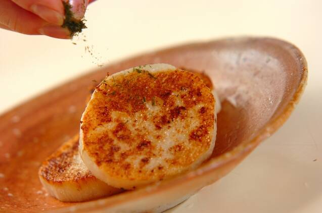 塩を振って器に盛り、青のりを振る。