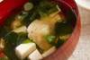 鍋にだし汁、<調味料>を加えて強火にかけ、再び煮立てばささ身、豆腐を加える。豆腐が温まればワカメ、刻みネギを加えて火を止める。