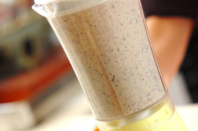 ミキサーに黒豆と豆乳の一部を加えペースト状にする。