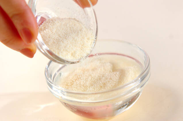 水大さじ3に粉ゼラチンを振り入れてふやかす。