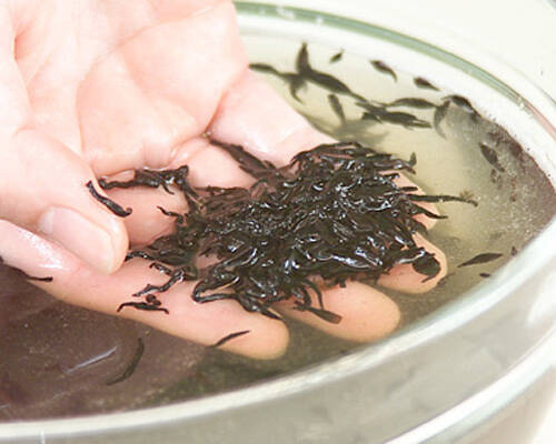 芽ヒジキはたっぷりの水につけて柔らかくて戻し、ザルに上げ流水できれいに洗い、水気をきる。(戻し時間は約20分)普通のひじきなら、柔らかく戻してから食べやすい長さに切る。