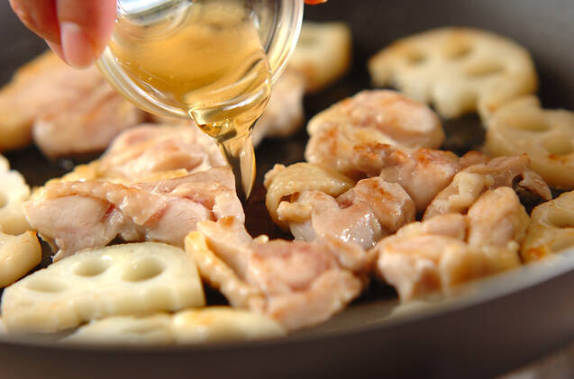 ハチミツとしょうゆを加え、汁気が少なくなるまでからめながら焼く。