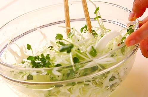 貝われ菜は根元を切り落としてサッと洗い、キャベツと合わせておく。