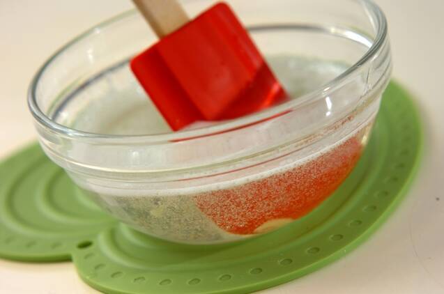 常温のサイダーにゼラチンを加えてよく混ぜる。