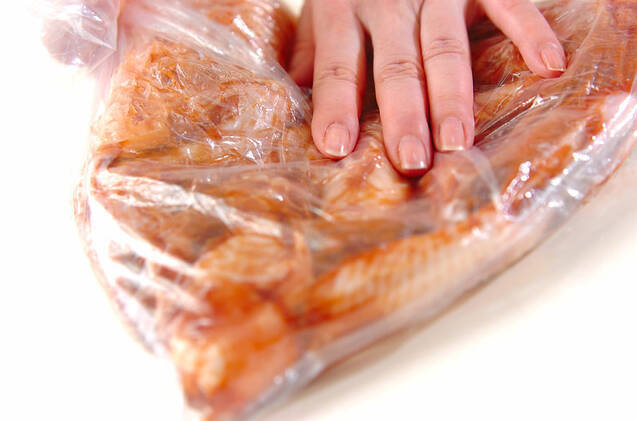 手羽先、手羽元は骨の際に切り込みを入れて火の通りをよくし塩コショウをすり込む。
