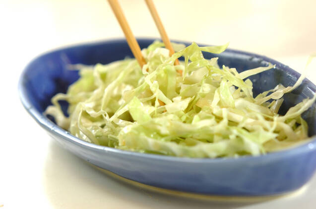キャベツに<ドレッシング>を少量からめ、キャベツがしんなりしたら汁気をきって器に盛る。