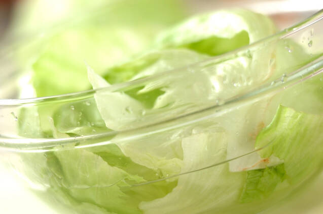 レタスを1枚ずつはがして(1)に2~3分放つ。