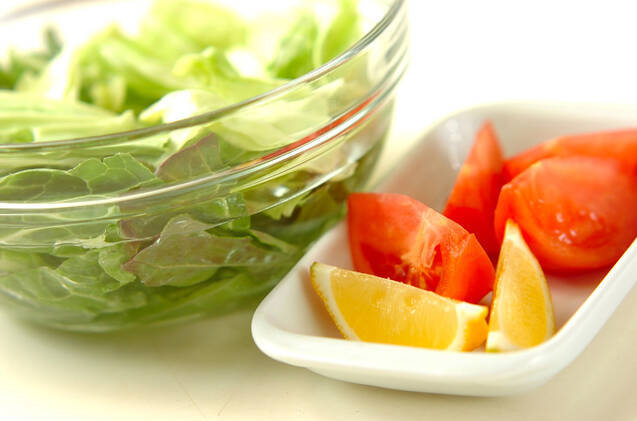 春キャベツはザックリと手でちぎって水洗いし、水気をきる。トマト、レモンはくし切りにする。