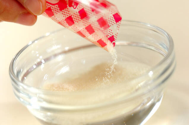 ゼラチンを水に振り入れてふやかす。