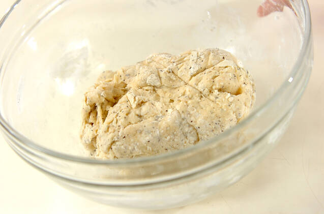 カードを使って混ぜ、生地がまとまってきたら分量外の打ち粉をした台に移し、こねる。