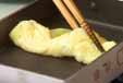 卵焼き器を中火で熱しサラダ油を引く。卵液の1/4量を流し入れ、巻く様に向こう側に寄せる。