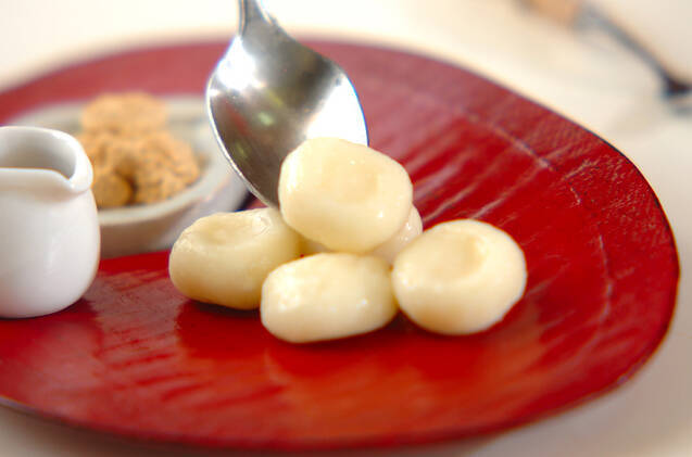 器に水気をきった団子を盛り、黒みつ、きな粉を添える。