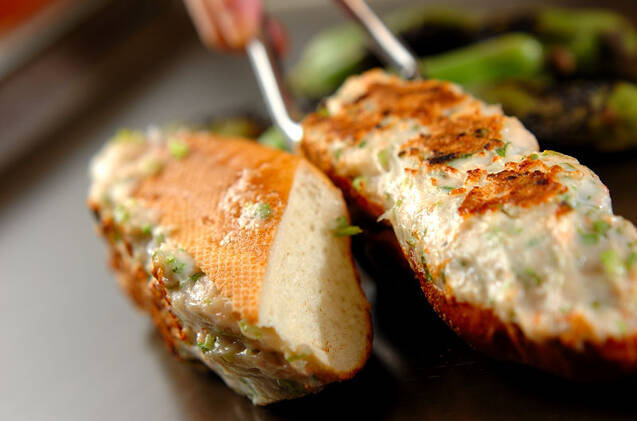 縦半分に切ったバゲットにエビペーストをぬり、サラダ油を熱した鉄板で両面焼く。お好みの大きさに切り、香菜の葉の部分をのせ、お好みでスイートチリソースをつけながら頂く。