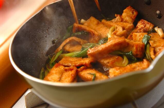さらに<調味料>の材料を加え、汁気がなくなるまで炒める。最後に白ゴマを加え、全体にからめる。