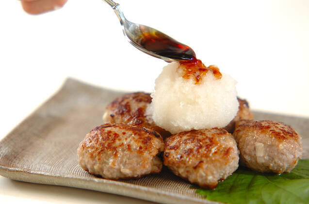 器に盛って大葉と大根おろしを添え、大根おろしにポン酢しょうゆをかける。
