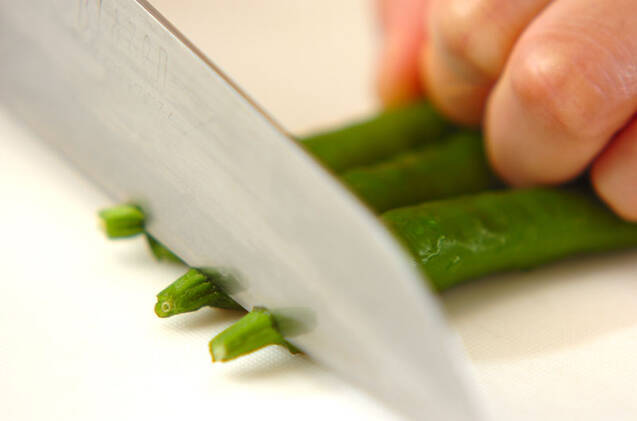 甘長唐辛子はサッと水洗いし、軸を切り揃える。
