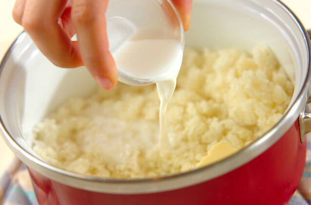 鍋にたっぷりの水とジャガイモを入れ、柔らかくなるまでゆでる。水気をきり、マッシャーでなめらかなマッシュ状になるようにつぶす。バターと牛乳を加えて泡立て器で混ぜ、塩コショウで味を調える。