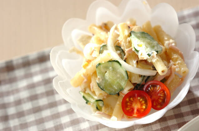 すり白ゴマと粒マスタードがよく合います。定番のマカロニサラダ。