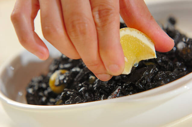 器に取り分け、お好みで塩コショウやタバスコをかけ、レモンを絞って下さい。