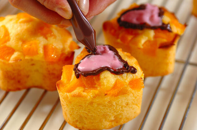 焼けたら型から取り出し、冷ます。チョコペンで模様を描く。