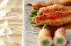 フライパンにサラダ油を熱し、(1)の焼き終わりを下にして全体に焼き色をつける。