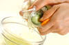 カブは葉を切り落として皮をむき、縦半分に切って薄い半月切りにする。