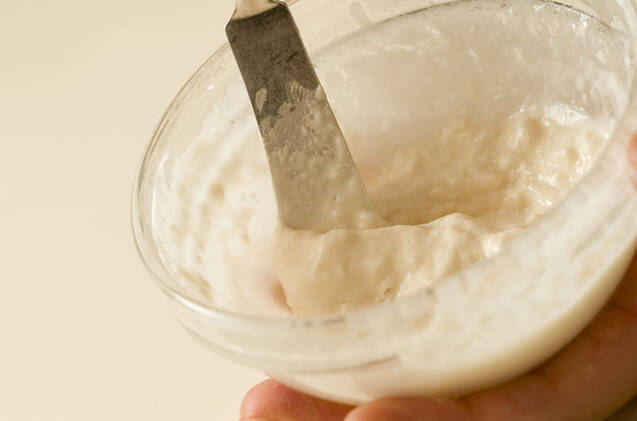 <小麦粉のり>を作る。小麦粉に少しずつ水を加え、粘りが出るまで混ぜ合わせる。