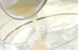 小鍋に水でふやかしたゼラチンとグラニュー糖20gを加え、弱火にかけてゼラチンを溶かし、1のボウルに加え混ぜる。