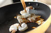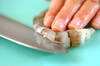 エビは一節を残して殻をむき、背側に切り込みを入れて背ワタを取り、分量外の塩水で洗って水気を拭き取る。
