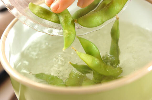 枝豆はサッと水洗いして、熱湯に加えてゆで、ザルに上げる。粗熱が取れたら、サヤから出す。