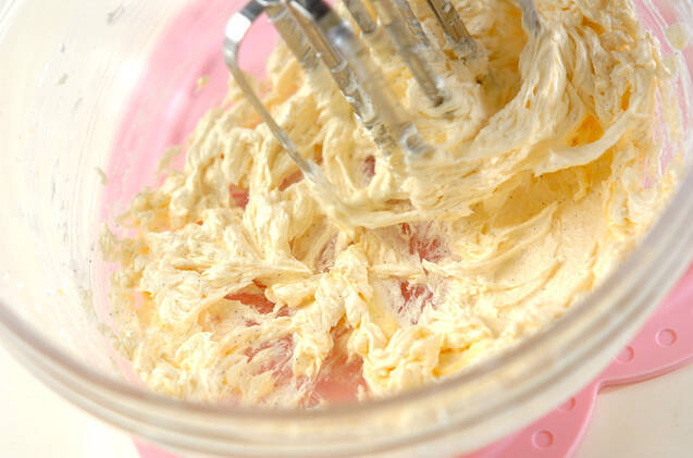 溶きほぐした全卵を少しずつ加え、その都度なじむまでよく混ぜる。