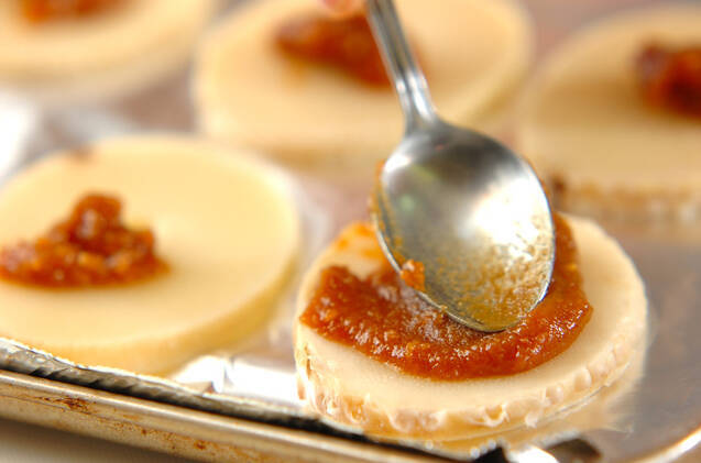 トースターのトレーにアルミホイルをしき、水煮タケノコを並べて<田楽みそ>をぬる。表面においしそうな焼き色がつくまで焼き、器に盛る。