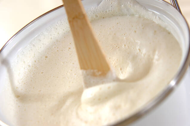 鍋に3の生呉を移し入れて強火にかける。沸々してきたら木ベラで鍋底から混ぜ、煮立つ直前で吹きこぼれない程度の火加減にして、泡を少し取りながら、7~8分煮る(呉汁)。