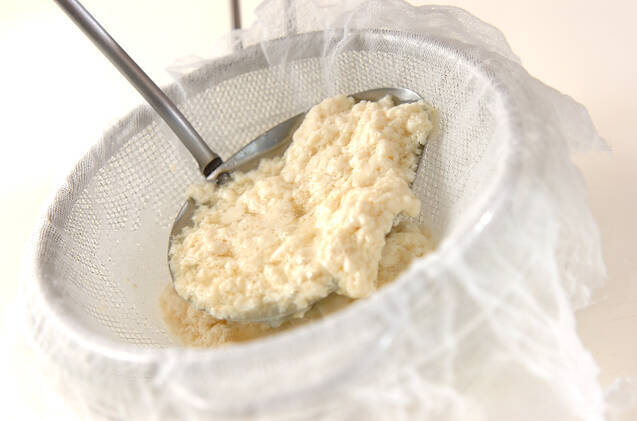豆乳の鍋を弱火にかけて70~80℃位になったら、水大さじ4で薄めたにがりを加えて木ベラで全体に混ぜる。少し待っていると、豆乳が固まってくる(おぼろ豆腐)。ザルに水でかたく絞ったガーゼ、または和紙を敷き、豆腐をすくって自然に水気をきる(ザル豆腐)。器に盛り、刻みネギ、おろしショウガ、かつお節、しょうゆ等を添える。