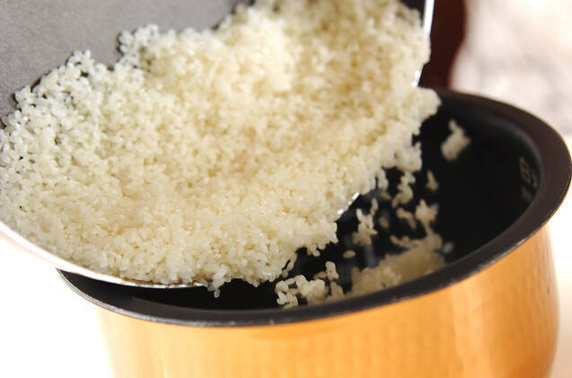 フライパンにバター10gを入れて中火にかけ、バターが溶けたら洗ったお米を炒め、お米が透き通ってきたら炊飯器に入れる。<調味料>を加え、通常に炊く時の量より少し少な目に分量外の水を注いでひと混ぜする。