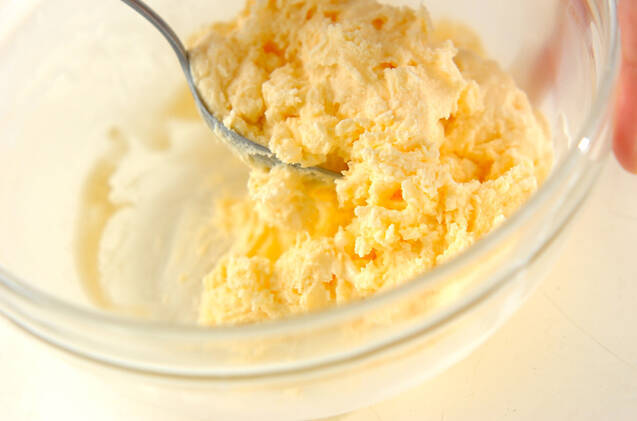 バニラアイスは室温に置き、スプーンで混ぜられる位の柔らかさになるまでおいておく。