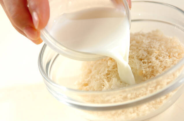 パン粉に牛乳をかけておく。