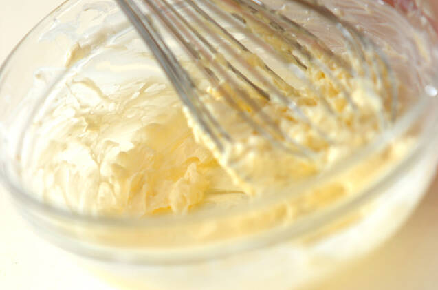 ボウルにクリームチーズとプレーンヨーグルトを混ぜ合わせる。