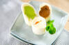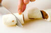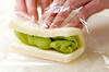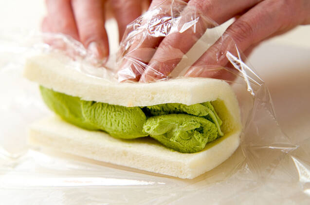 サンドイッチ用のパンに1枚にはチョコアイス、1枚には抹茶アイス、残り1枚にはジャムとバニラアイスを塗ってクルクル巻き、ラップで包んで冷凍する。