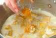 再び煮立てば砂糖、塩、ターメリックを加え、落とし蓋をし、中火にして煮汁がほとんどなくなるまで煮る。