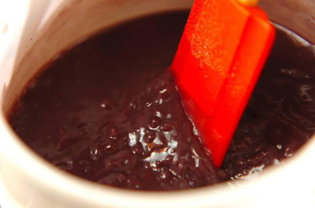 鍋に<ようかん>の材料を入れ、混ぜながら中火にかける。少しクツクツしている状態で1分煮る。